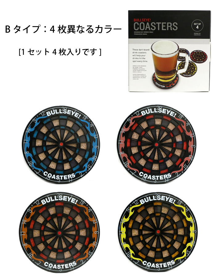 コースター ダーツコースター コルク 4枚セット コップ敷き z-066-B