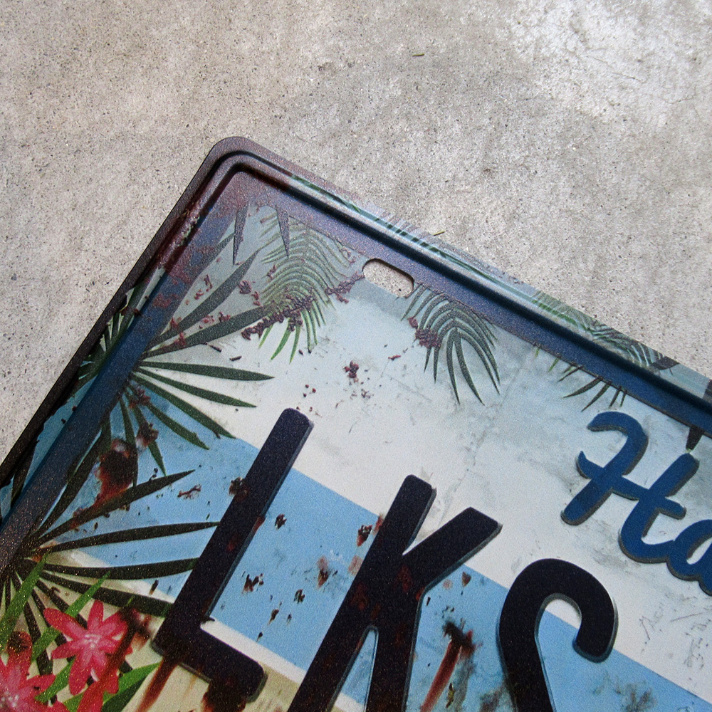 ナンバープレート LKS973 HAWAII ティンサイン 看板 ブリキ看板 インテリア ディスプレイ レトロ アメリカン雑貨